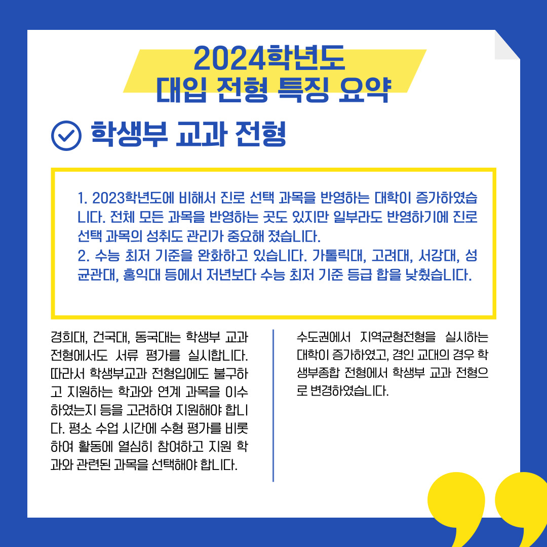 이번 포스팅은 2024학년도 수시 전형 변경점
